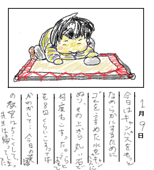 キャンパス作りが終わったと思ったら、ダメ出しがあったのでまた何度か石でこすり直し、